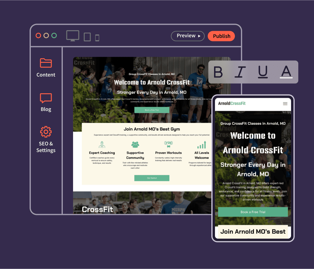 Get a custom-built, search engine-optimized gym website designed for conversions and fully integrated with Wodify so you can manage leads, schedules, membership sales and more—all in one place.